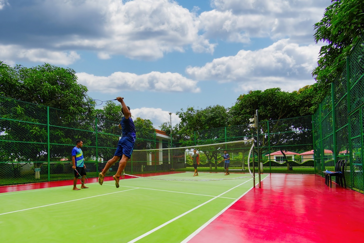 Guests can play Badminton, Basketball and Volleyball. Other activities include swimming, cycling, basketball, badminton, fishing, sauna, steam bathing, kids zone, boul song and the gym.